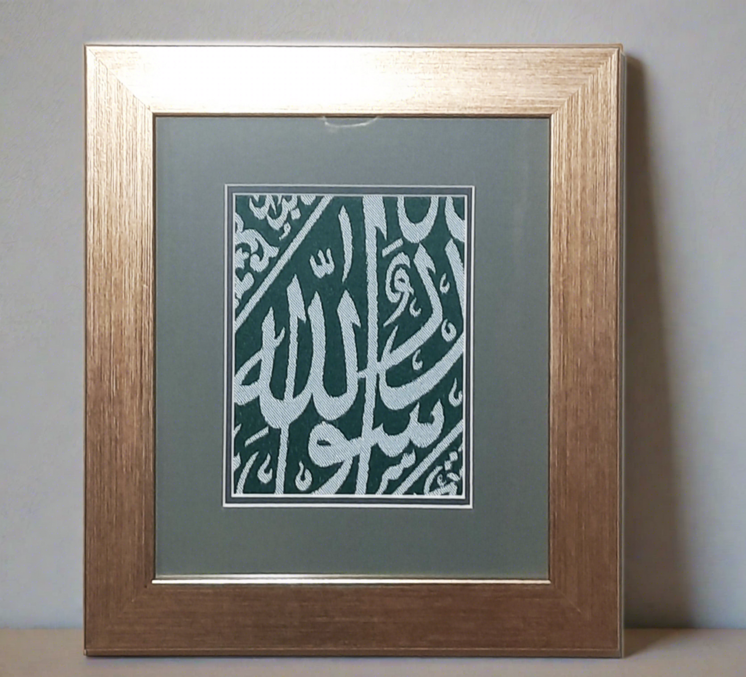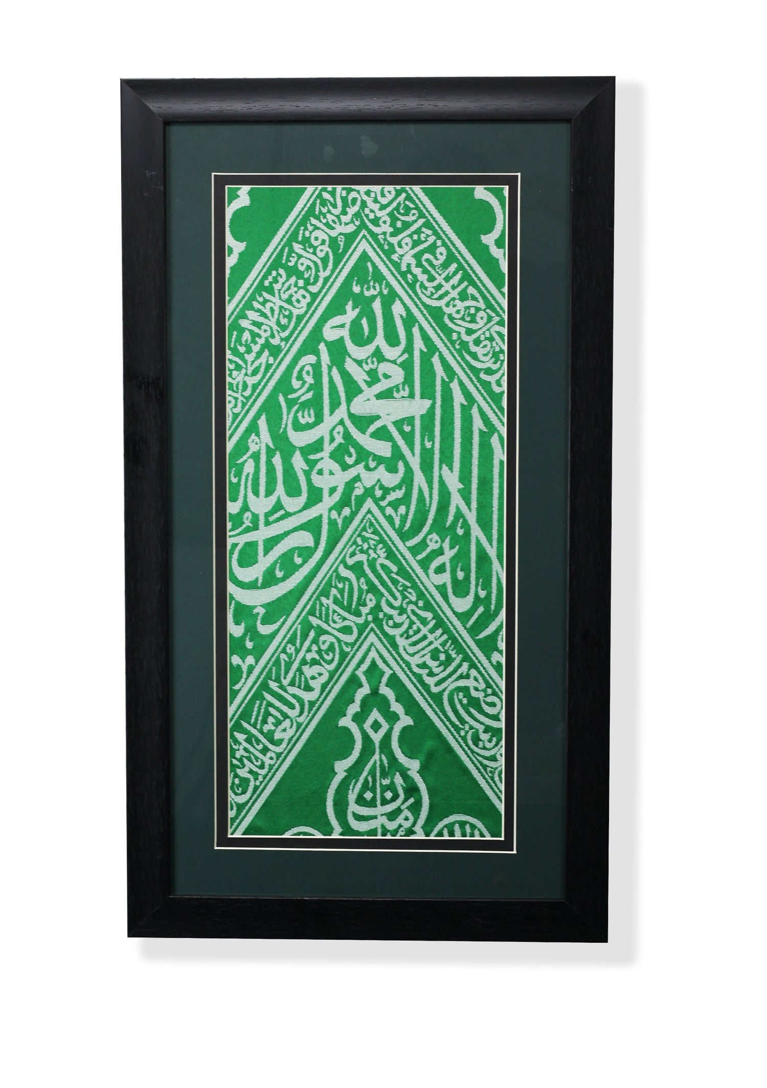 This exquisite framed Kiswah (Ghilaf) is a treasured piece of Islamic heritage,...