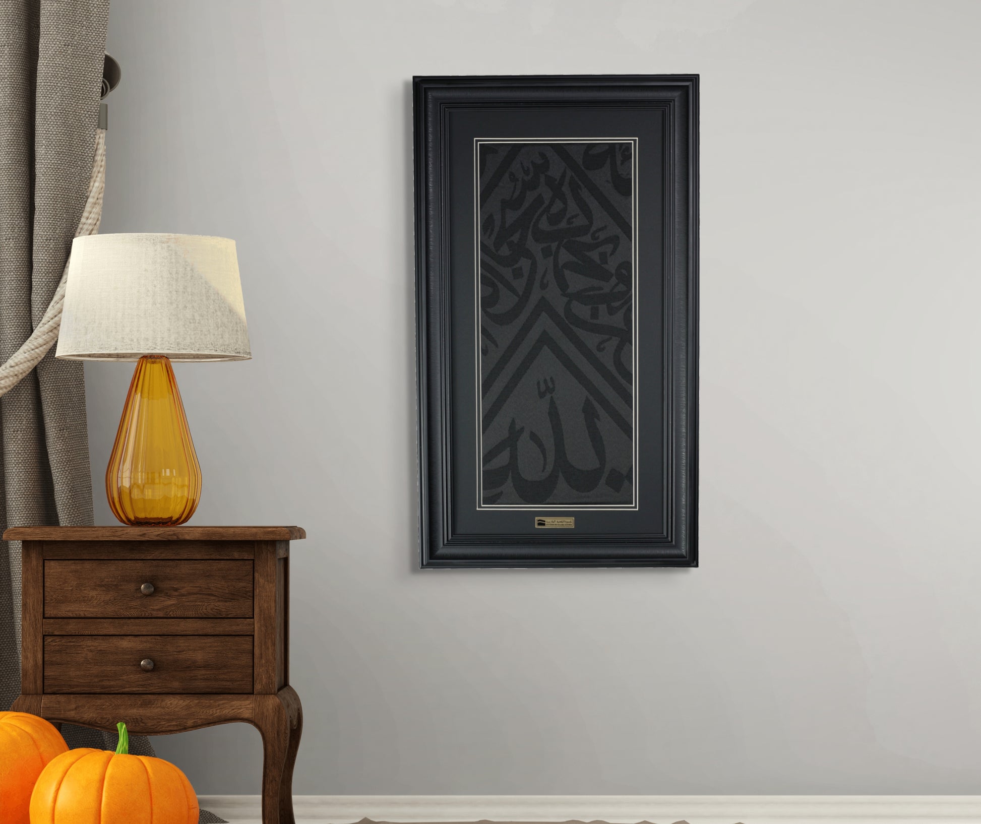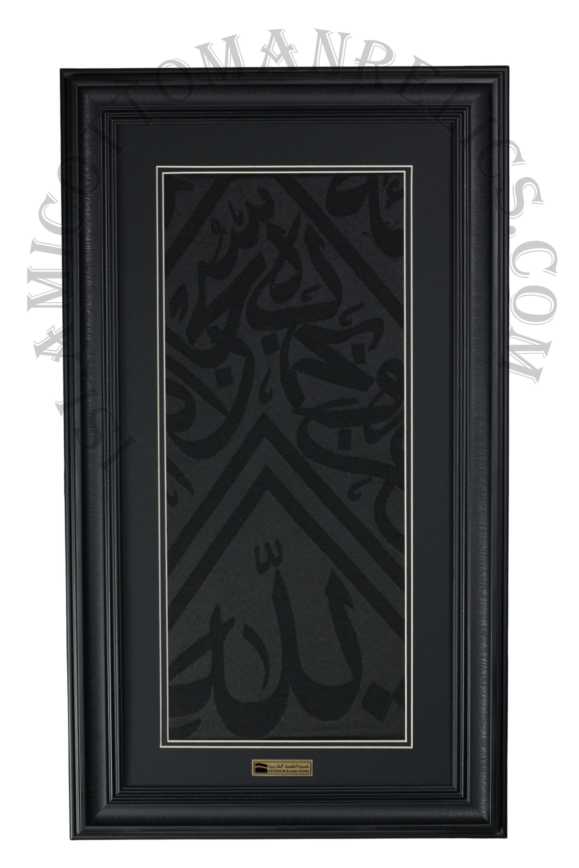 Cette magnifique pièce encadrée présente un véritable fragment de la Kaaba Kiswa, le tissu sacré qui recouvre la Kaaba à La Mecque. Le riche tissu noir avec une élégante calligraphie arabe ajoute un sentiment de paix et de spiritualité à n'importe quelle pièce, ce qui le rend parfait pour un espace de prière, un salon ou un bureau personnel.