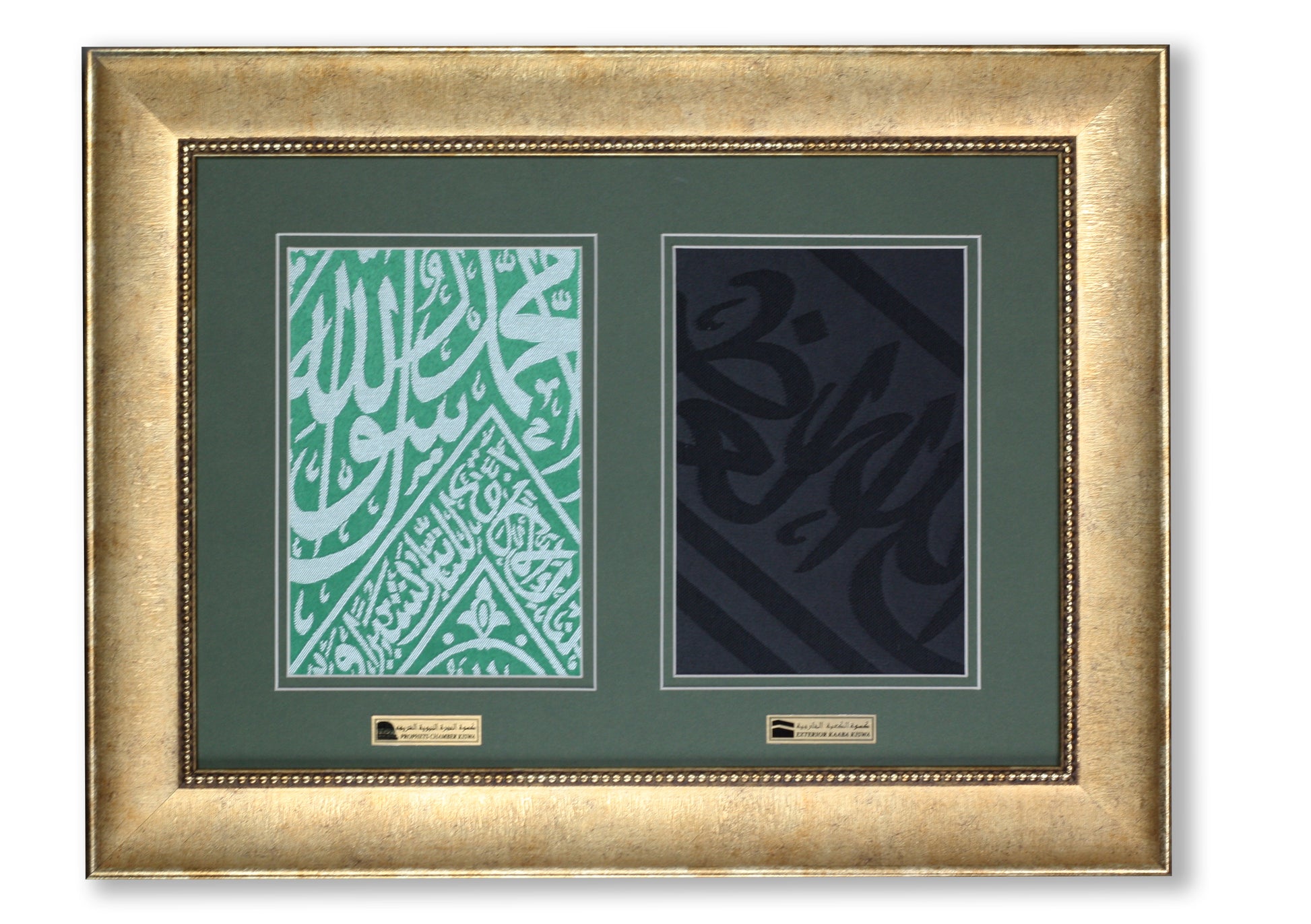 A cut piece from the Curtain Of The Prophet Mohammad Chamber and a cut piece from Kiswa cloth holy kaabah
